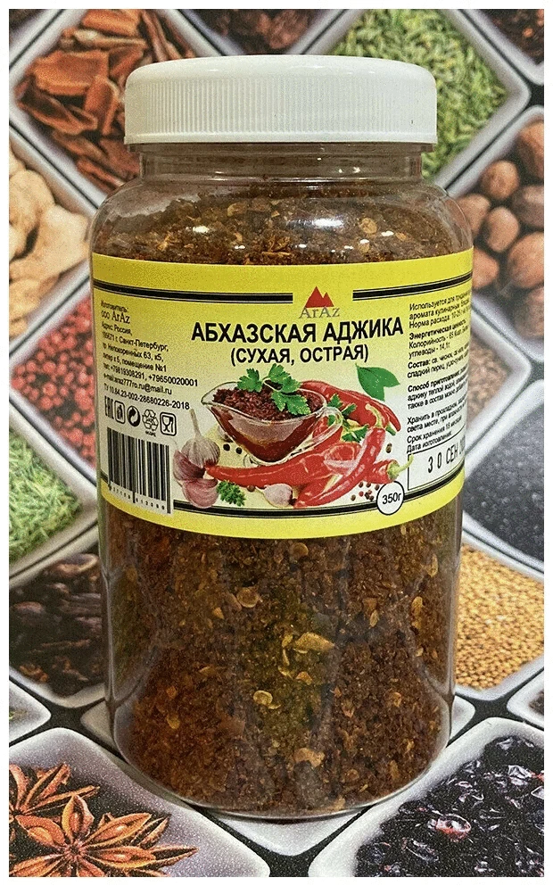 Абхазская аджика (сухая,острая) "Араз" (Россия). Упаковка - пластиковая банка 350 г.