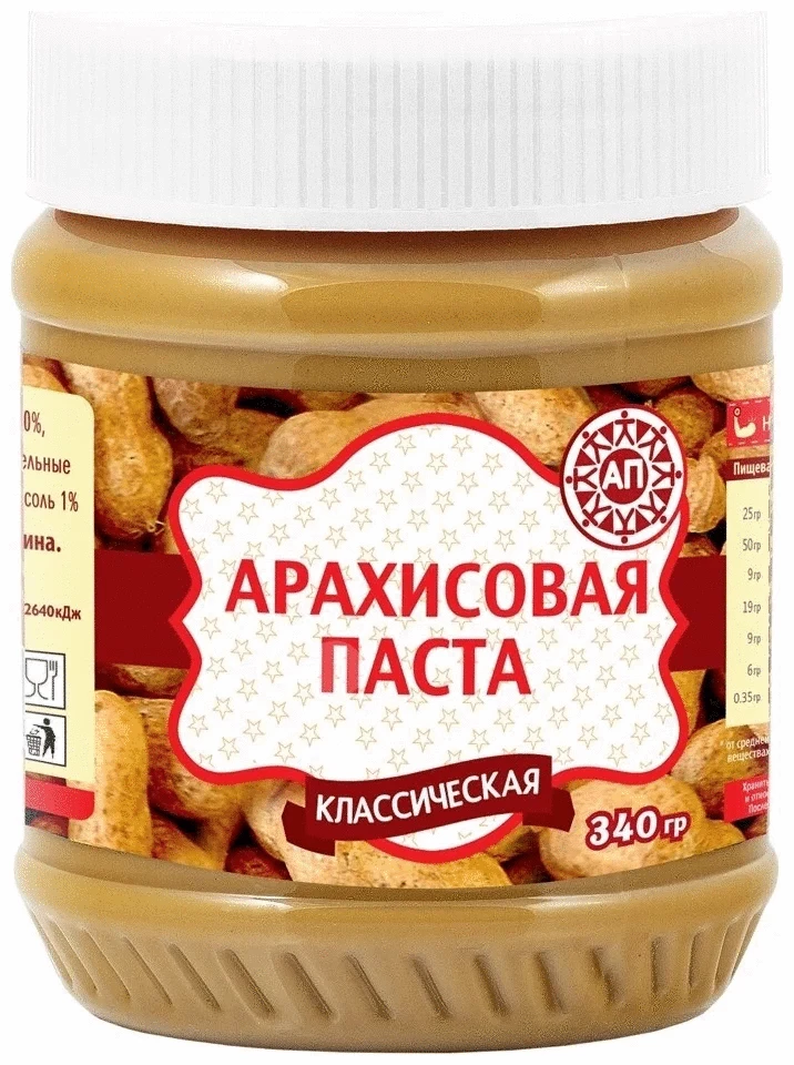 Арахисовая паста "Азбука продуктов". Упаковка - пластиковая банка 340 г.