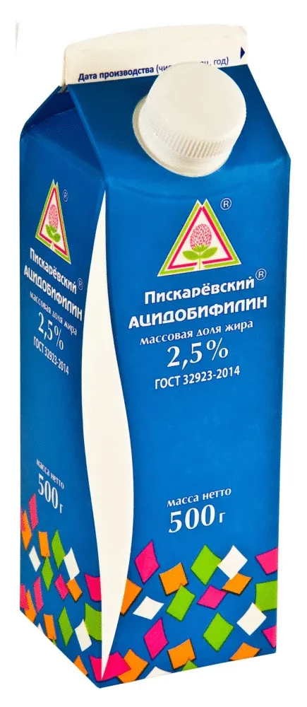Ацидофилин "Пискаревский" 2,5% жирности (Россия). Упаковка - тетрапак 500 г.