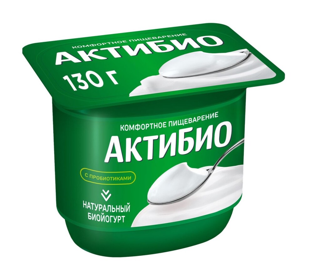 Биойогурт "Актибио" Натуральный 2,9% жирности (Россия). Упаковка - пластиковая ванночка 130 г.