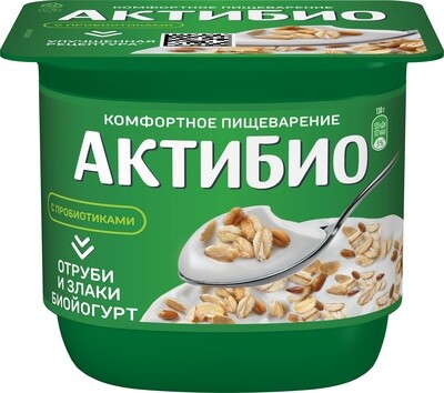 Биойогурт "Актибио" Отруби и злаки 2% жирности (Россия). Упаковка - пластиковая ванночка 130 г.