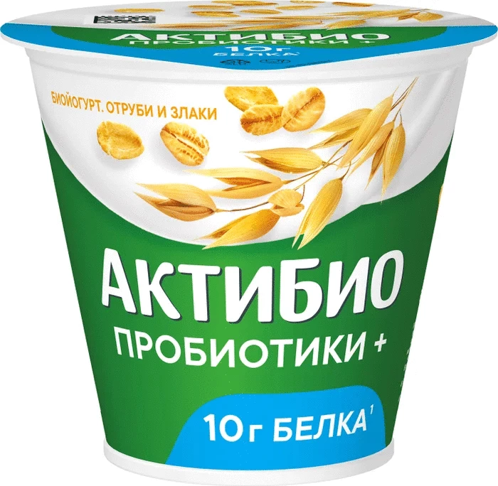 Биойогурт "Актибио" Отруби, злаки 2,9% жирности (Россия). Упаковка - пластиковая ванночка 220 г.