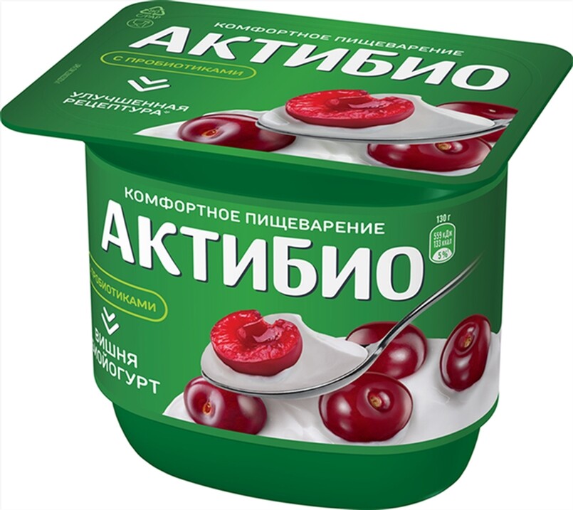 Биойогурт "Актибио" Вишня 2,9% жирности (Россия). Упаковка - пластиковая ванночка 130 г.