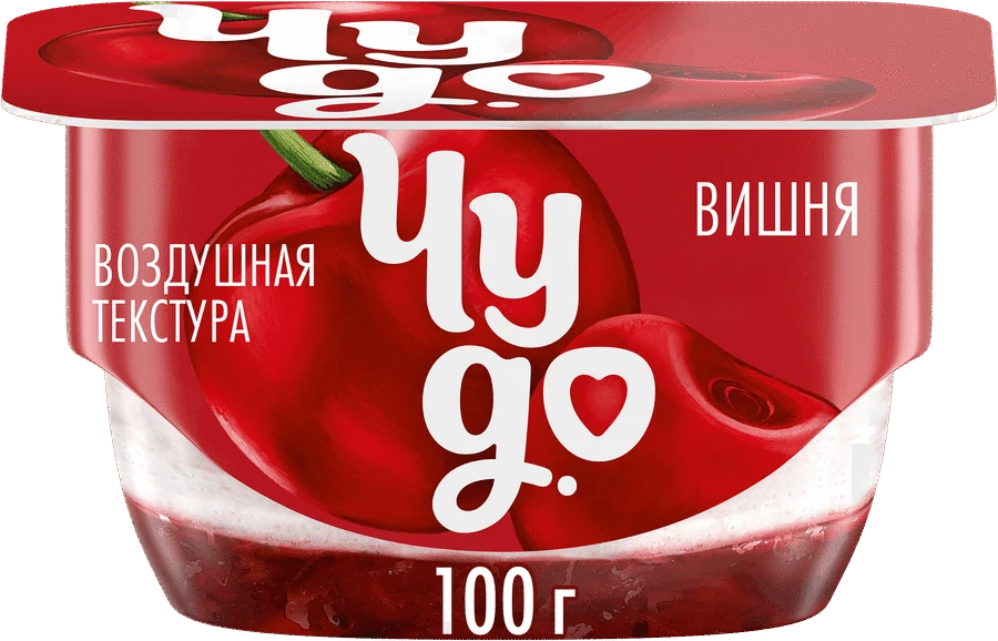 Творожок "Чудо" взбитый двухслойный Вишня 4,2% жирности. Упаковка - пластиковая ванночка 100 г.