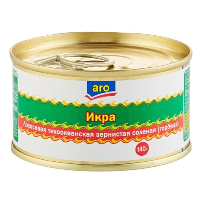 Состав: икра, соль пищевая, консерванты: Е200, Е211, стабилизатор Е412, агент антислеживающий Е536. Произведена из мороженого сырья.