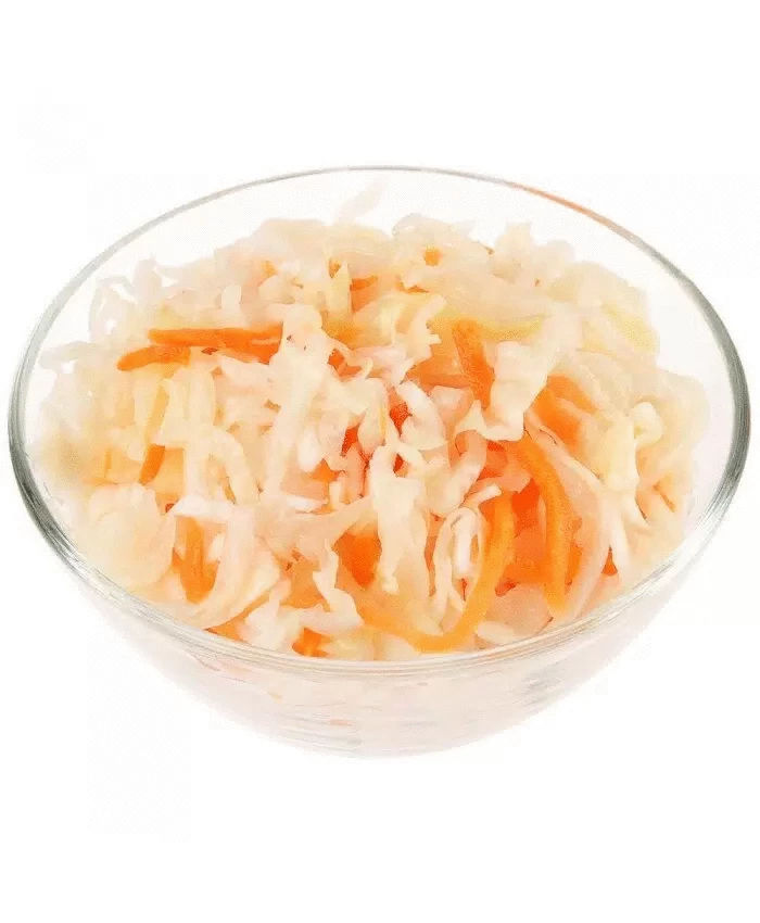 Капуста кисло-сладкая, с добавлением моркови. Расфасованная в ведра по 2 кг.