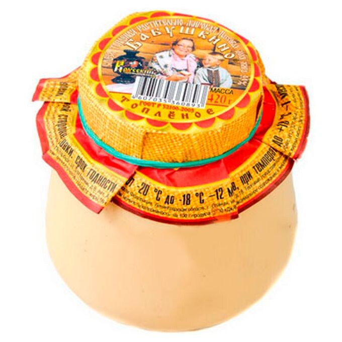 Масло топленое "Бабушкино" (Россия). Упаковка - стеклянная банка 420 г.