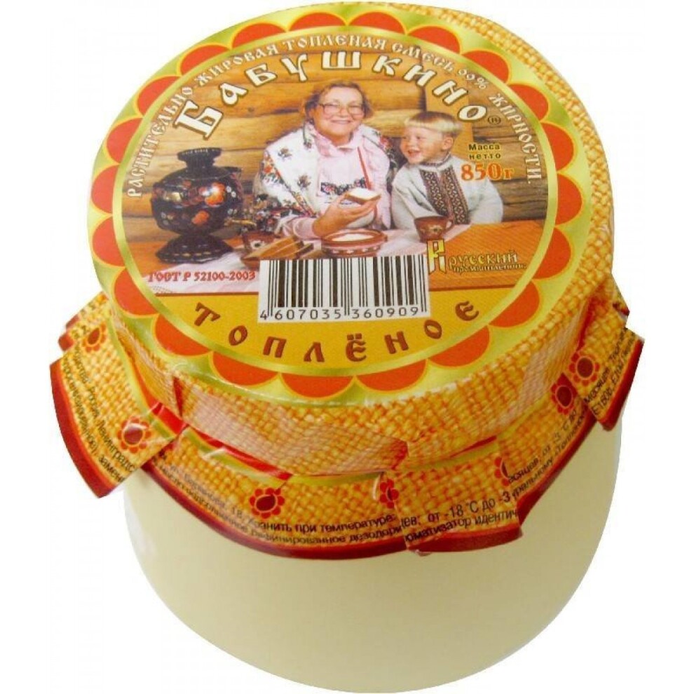 Масло топленое "Бабушкино" (Россия). Упаковка - стеклянная банка 850 г.