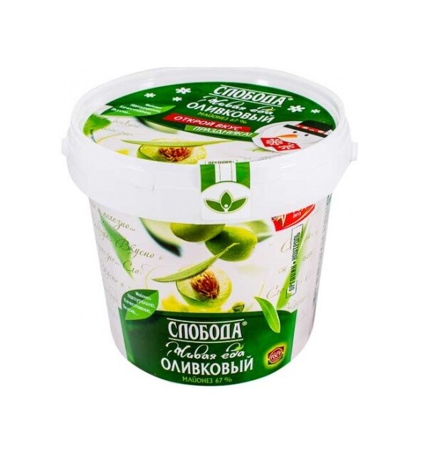 Майонез "Слобода" оливковый, жирность - 67%, упаковка - пластиковое ведерко 900 г