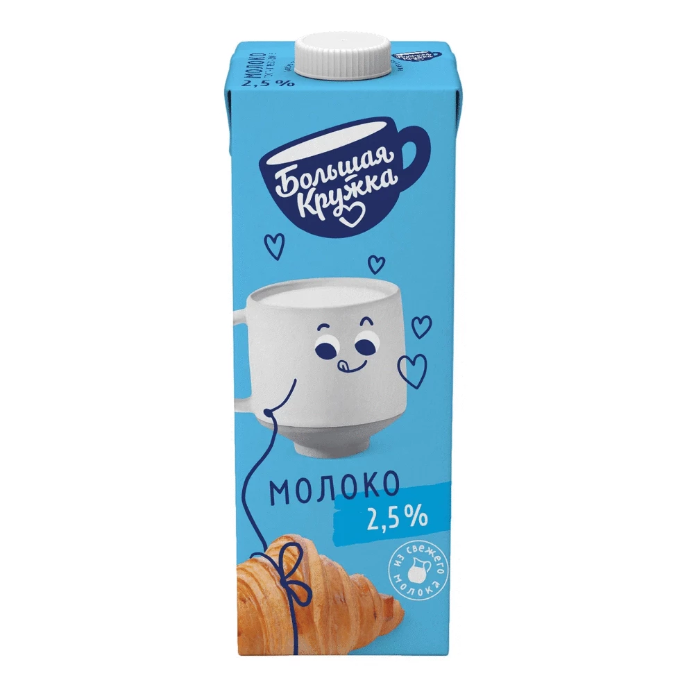 Молоко "Большая кружка" 2,5% жирности. Упаковка - тетрапак 0,98 л.