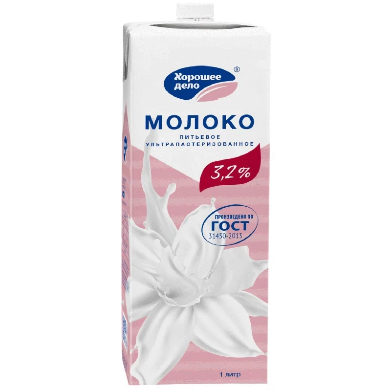 - Молоко "Хорошее дело" 3,2% (1 л)