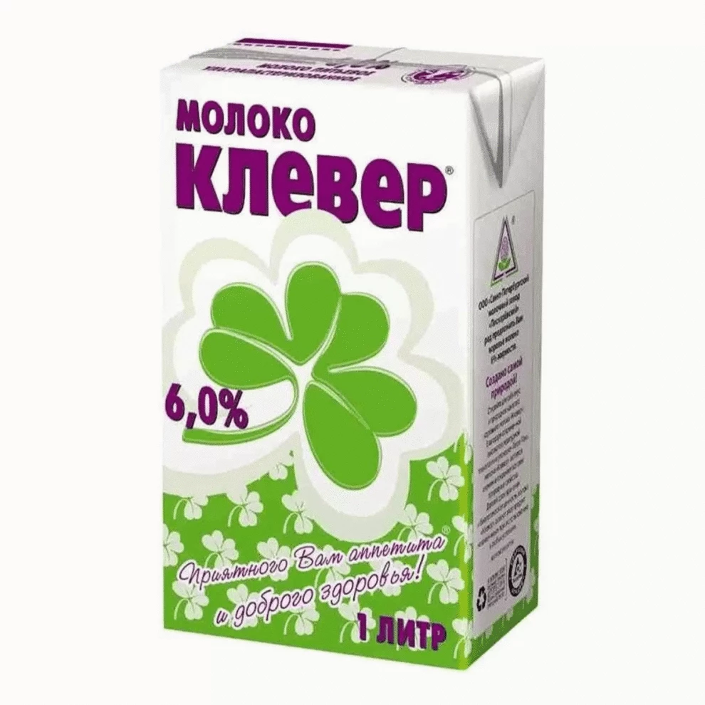 Молоко "Клевер" 6% жирности. Упаковка - тетрапак 1 л.