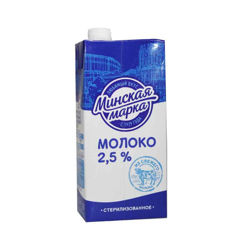 Молоко "Минская марка" 2,5% жирности (Белоруссия). Упаковка - тетрапак 1 л.
