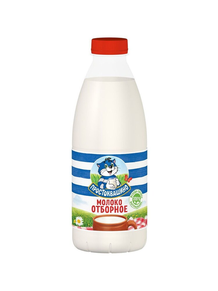Молоко "Простоквашино" отборное 3,4-4,5% жирности. Упаковка - пластиковая бутылка 0,93 л.