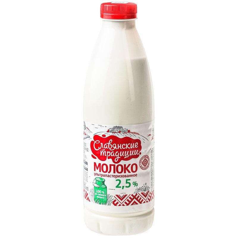 Молоко "Славянские традиции" 2,5% жирности. Упаковка - пластиковая бутылка 900 мл.
