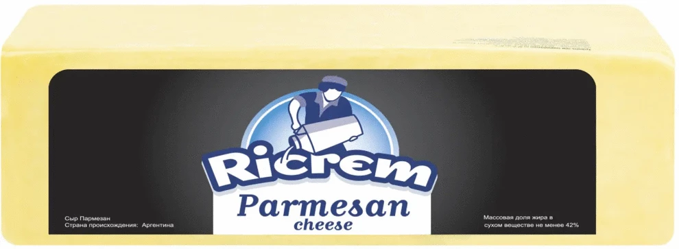 Пармезан Ricrem твердый (брус) «Molfino Hnos» 40% жирности (Аргентина). Упаковка - брус примерным весом 2,5 кг.