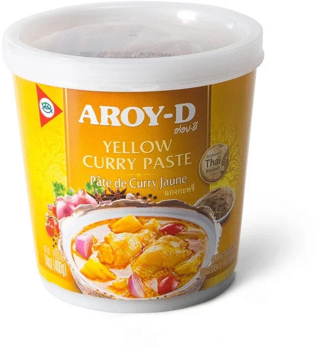 Паста карри жёлтая "Aroy-D". Упаковка - пластиковая банка 200 г.