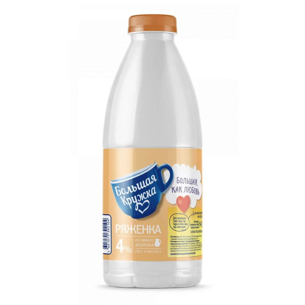 Ряженка "Большая Кружка" 4% жирности. Упаковка - пластиковая бутылка 800 мл.