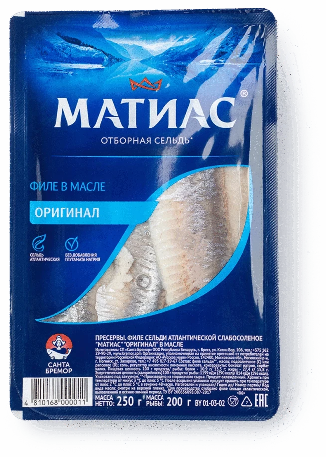 Сельдь филе "Санта-Бремор" (Белоруссия). Фасовка по 250 г.