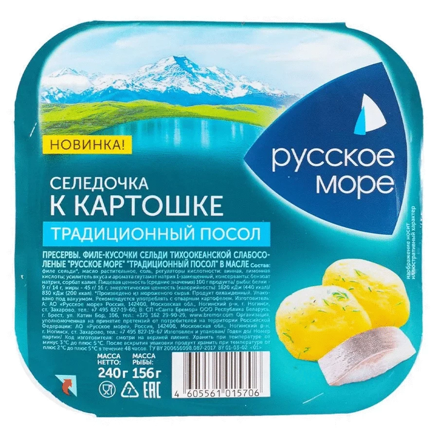 Сельдь к картошке филе-кусочки в масле "Русское море" традиционный посол (240 г)
