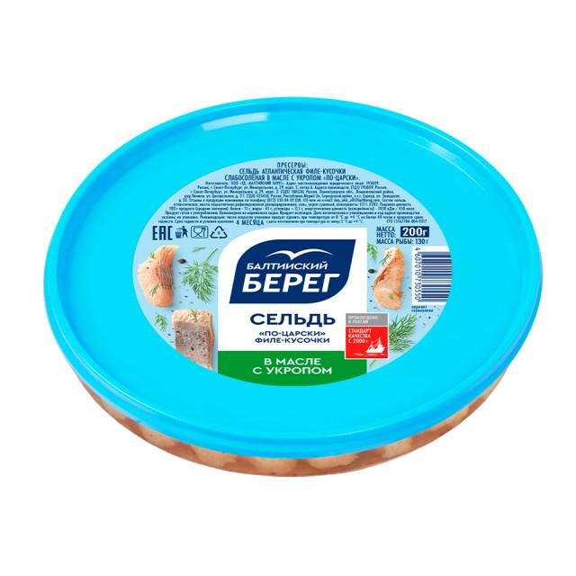 Сельдь По-царски "БАЛТИЙСКИЙ БЕРЕГ" филе-кусочки в масле с укропом (200 г)