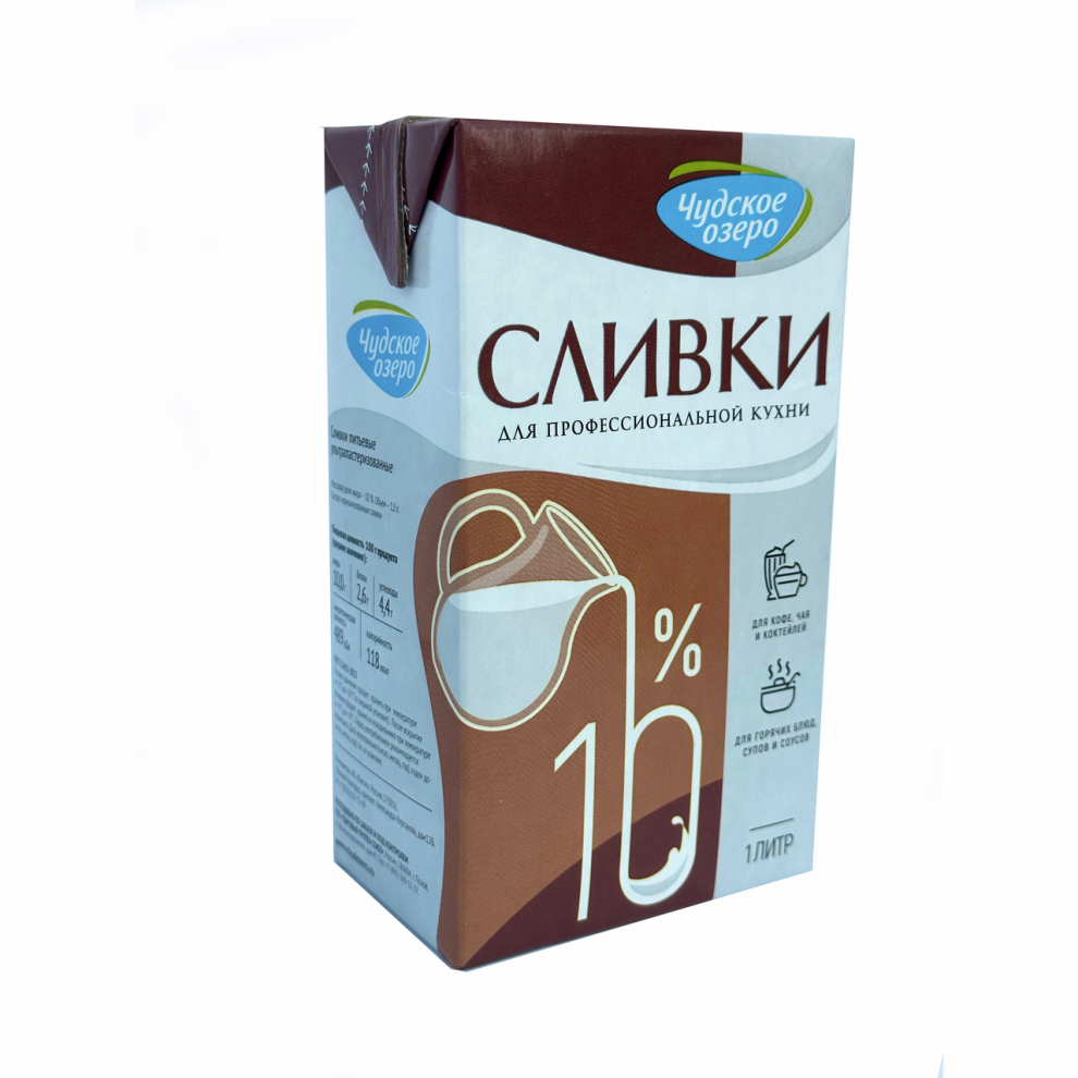 Сливки "Чудское озеро" 10% жирности (Россия). Упаковка - тетрапак 1 л.