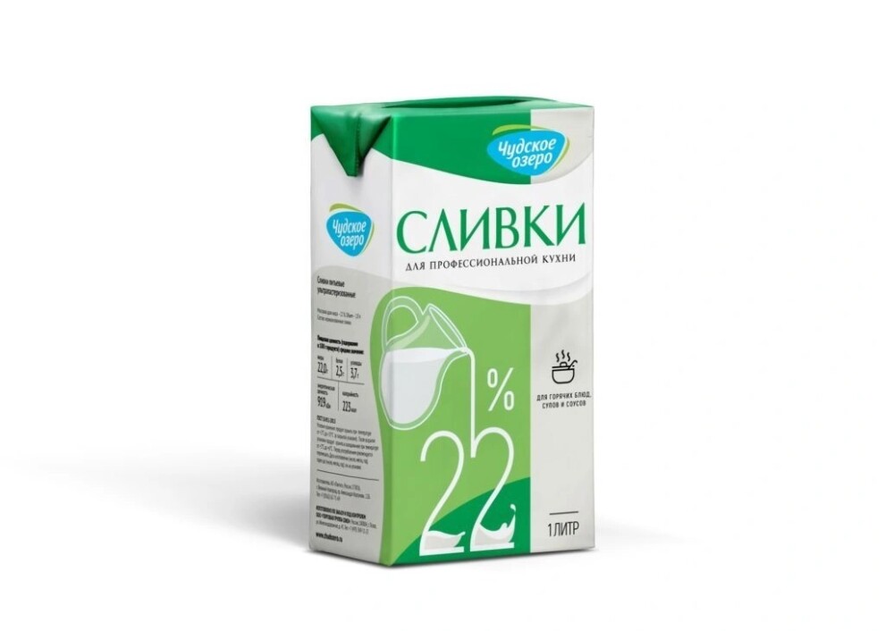 Сливки "Чудское озеро" 22% жирности. Упаковка - тетрапак 1 л.