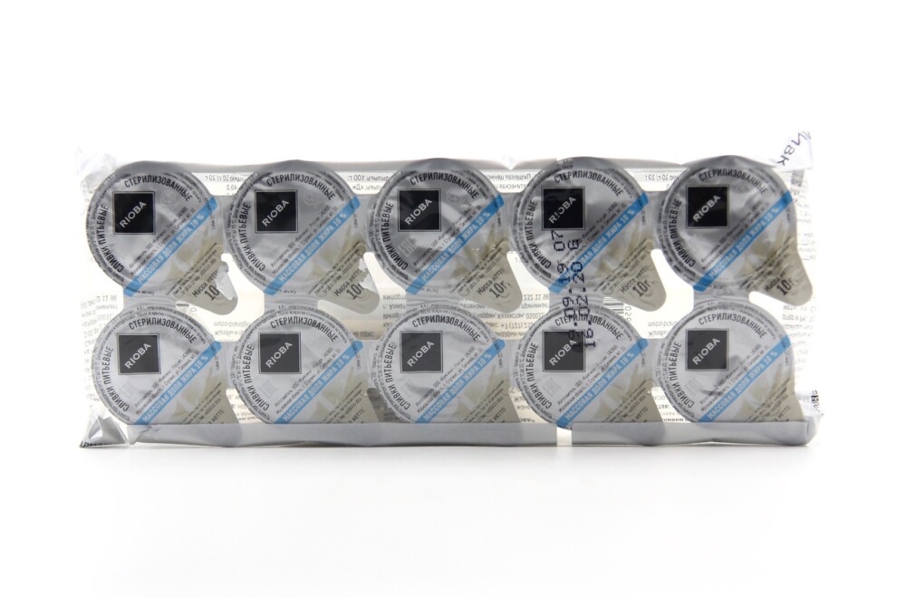 Сливки порционные "Rioba" 10% жирности. Упаковка - пластиковые ячейки 10 штук по 10 г.