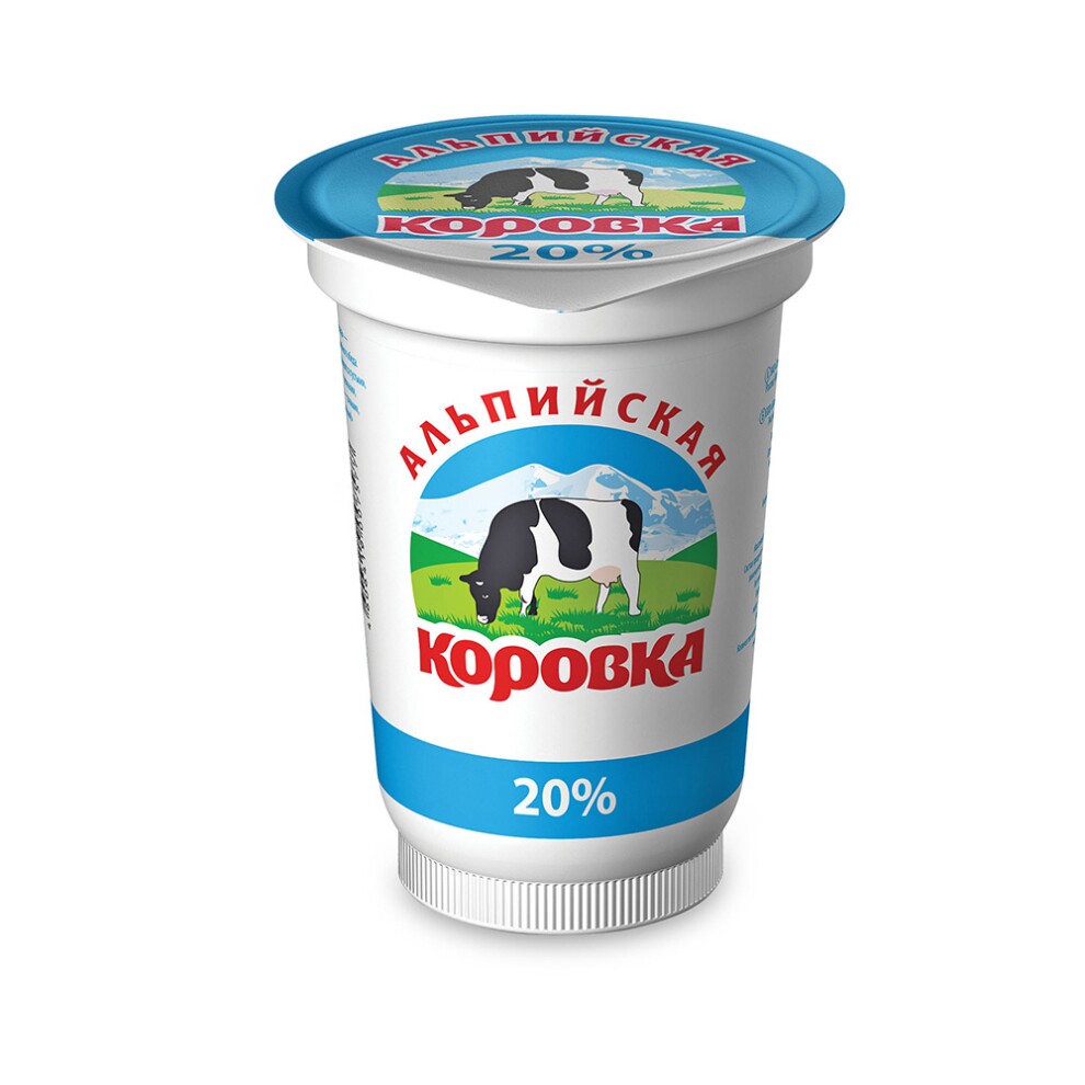 Сметанный продукт "Альпийская коровка" 20% жирности. Упаковка - пластиковый стакан 500 г.