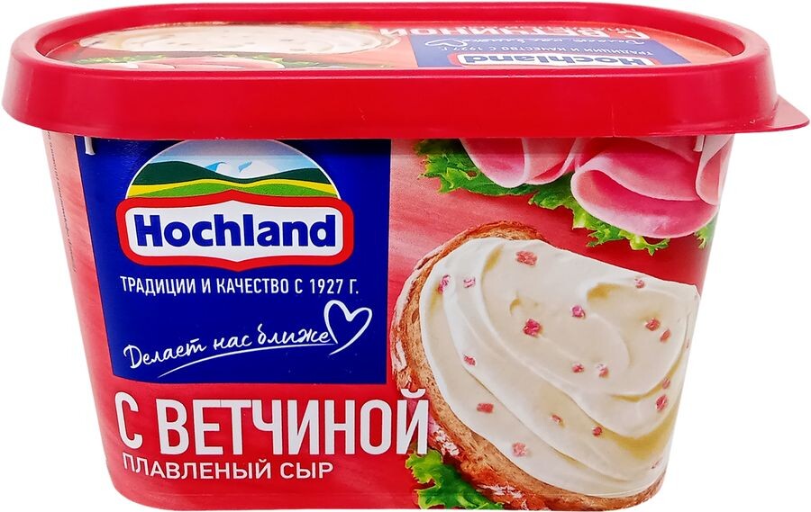Сыр плавленый "Hochland" с ветчиной, 55% жирности (Россия). Упаковка - 400 г.