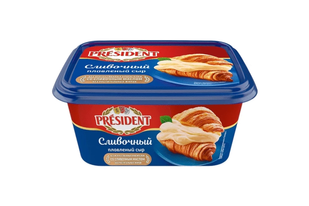 Сыр плавленый "President" сливочный (Россия). Массовая доля жирности 45%. Упаковка - 400 г.