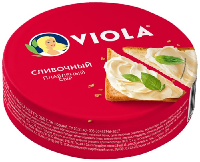 Сыр плавленый "Viola" сливочный, жирность 35%. Упаковка 130 г.