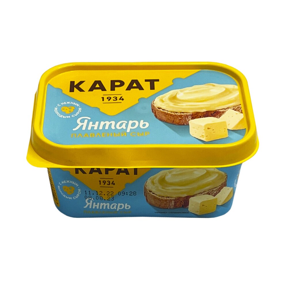 Сыр плавленый Янтарь "Карат", 45% жирности. Упаковка - пластиковая ванночка 400 г.