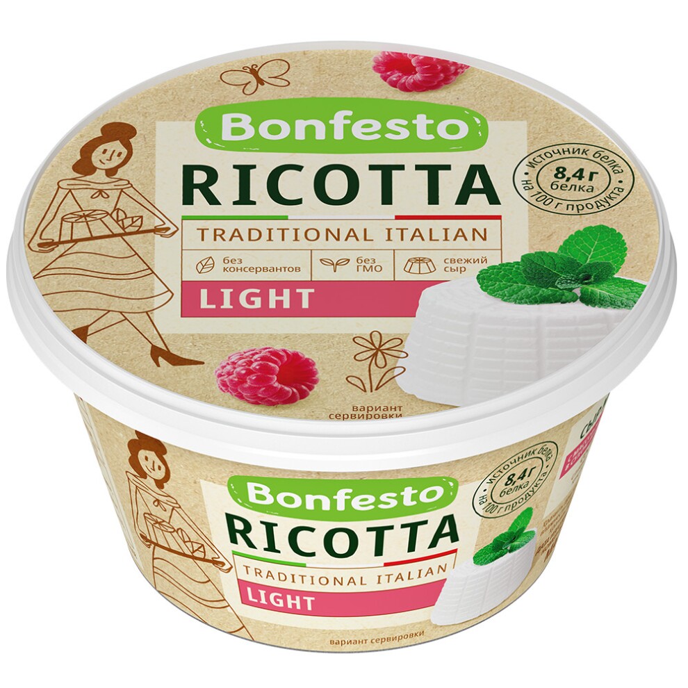 Сыр Рикотта "Bonfesto", 40% жирности. Упаковка - 250 г.