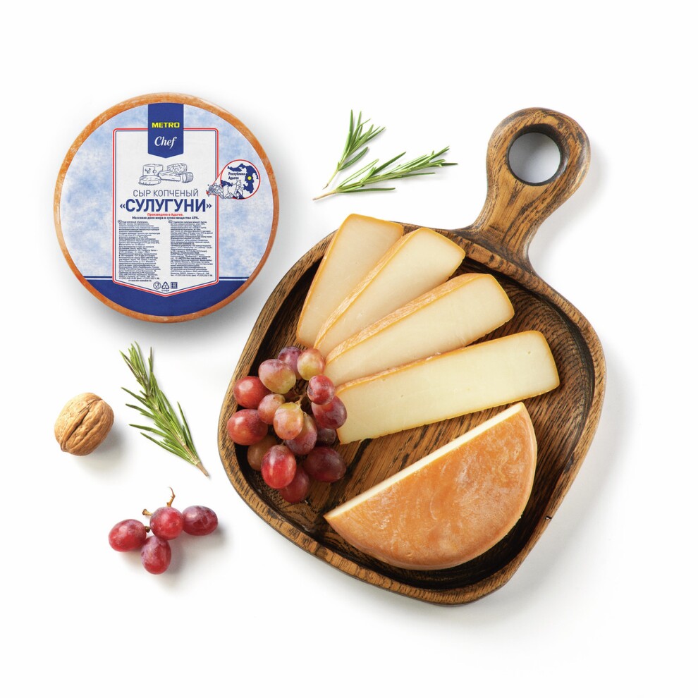 Сыр сулугуни копченый "Metro Chef" 45% жирности (Россия). Упаковка - около 500 г.