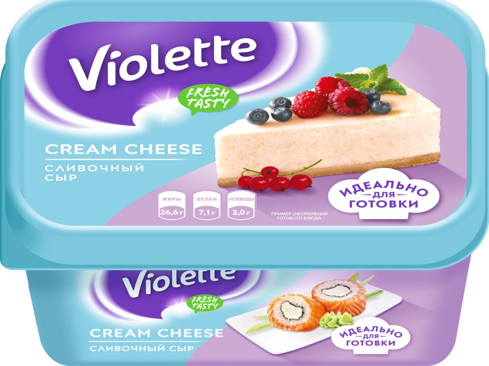 Сыр творожный сливочный "Violette" (Россия) 70% жирности. Упаковка - 400 г.