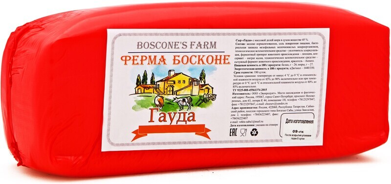 Сыр Гауда "Ферма Босконе" (Россия), 40% жирности. Упаковка около 4 кг.