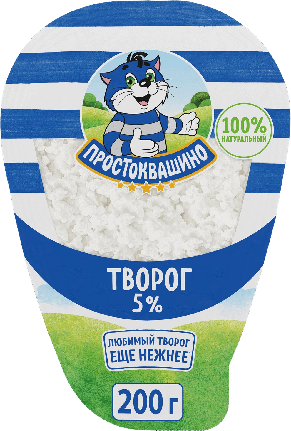 Творог "Простоквашино" 5% жирности. Упаковка - пластиковая ванночка 200 г..