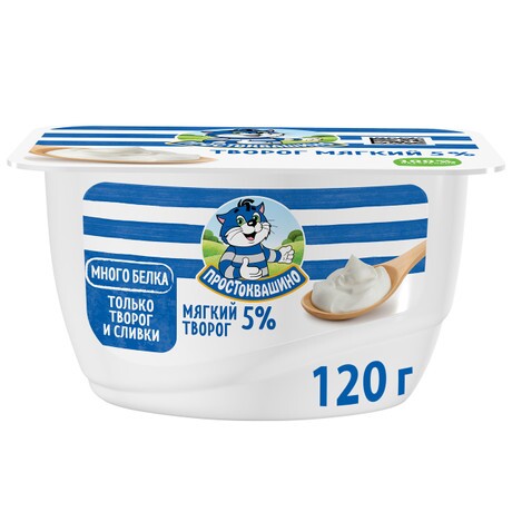 Творог "Простоквашино" мягкий 5% жирности. Упаковка - пластиковая ванночка 130 г.