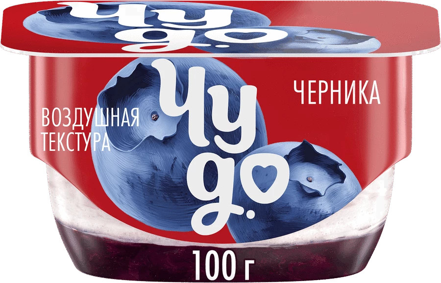 Творожок "Чудо" взбитый двухслойный Черника 4,2% жирности. Упаковка - пластиковая ванночка 100 г.