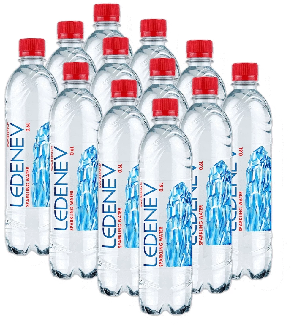 Вода питьевая "Леденев" газированная (Россия). Упаковка - 12 пластиковых бутылок по 0,6 л.