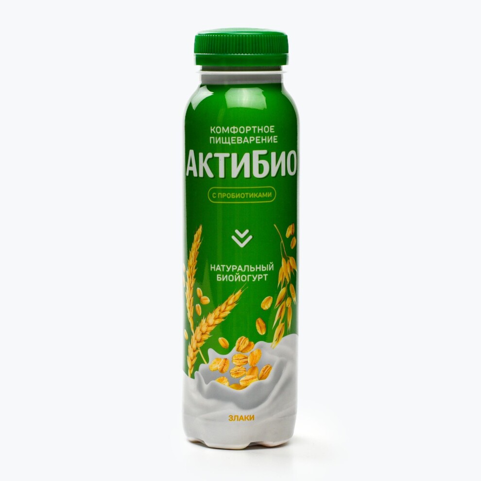 Йогурт питьевой "Актибио" злаки 1,6% жирности (Россия). Упаковка - пластиковая бутылка 260 г.
