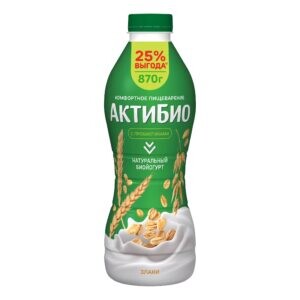 Йогурт питьевой "Актибио" злаки 1,5% жирности (Россия). Упаковка - пластиковая бутылка 870 г.