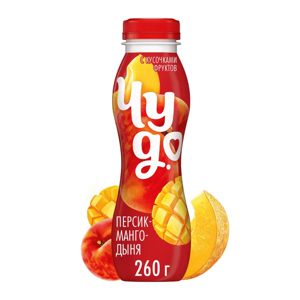 Йогурт питьевой "Чудо" персик-манго-дыня 1,9% (260 г)
